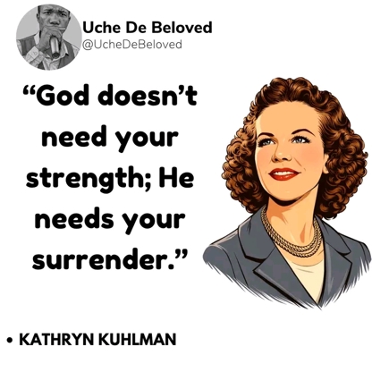 By Strength shall no man prevail. God does not need your strength, but your total surrender, and He will impart you with his strength and all you need for the Journey